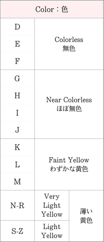 D~Zまでの23段階に分かれ、無色透明であるほど希少性が高くなります。